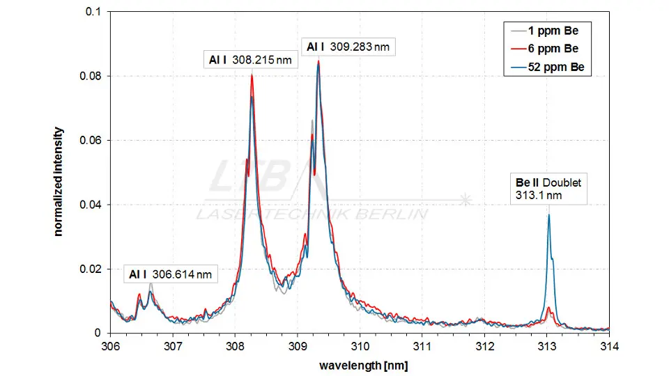 The metal beryllium is a very light chemical element that cannot be measured with the majority of established analytical methods in gemmology. LTB’s µ-LIBSlab is a reliable LIBS based measurement system for the detection of beryllium diffusion treatment of sapphires. It enables the detection of the characteristic beryllium emission line at 313.1 nm (Be II Doublet) precisely down to the single-digit ppm range. Laser-induced plasma spectroscopy (LIBS) is one of the few quasi-destructive measurement methods with a versatile range of applications in gemmology that enables qualitative and quantitative multi-element analysis, particularly of light elements with single-digit ppm proportions in the gemstone, without sample preparation.