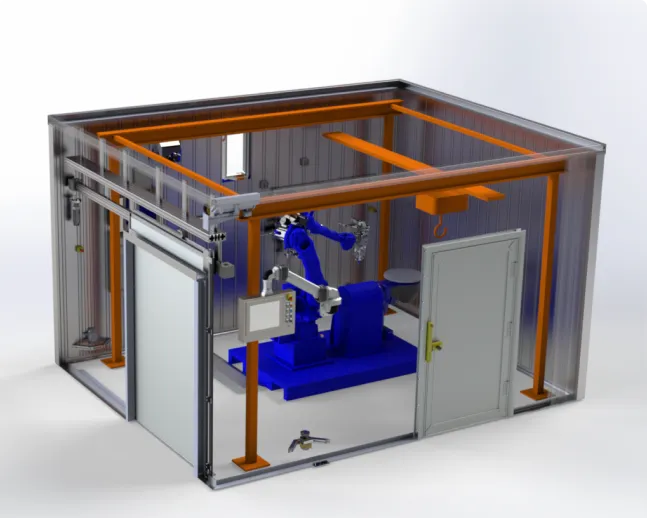 The LTSS IR laser robot cutting and welding system is designed for the automated cutting and welding of metal components. With an integrated camera system, the entire machining process can be monitored in real time, ensuring precise control and safety.